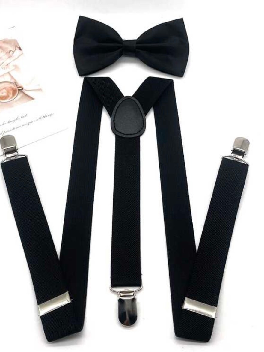 Bowtie Suspender’s Combo For Men Bow tie & suspenders men’s combo in polyester plain strap combination adjustable tie and suspender