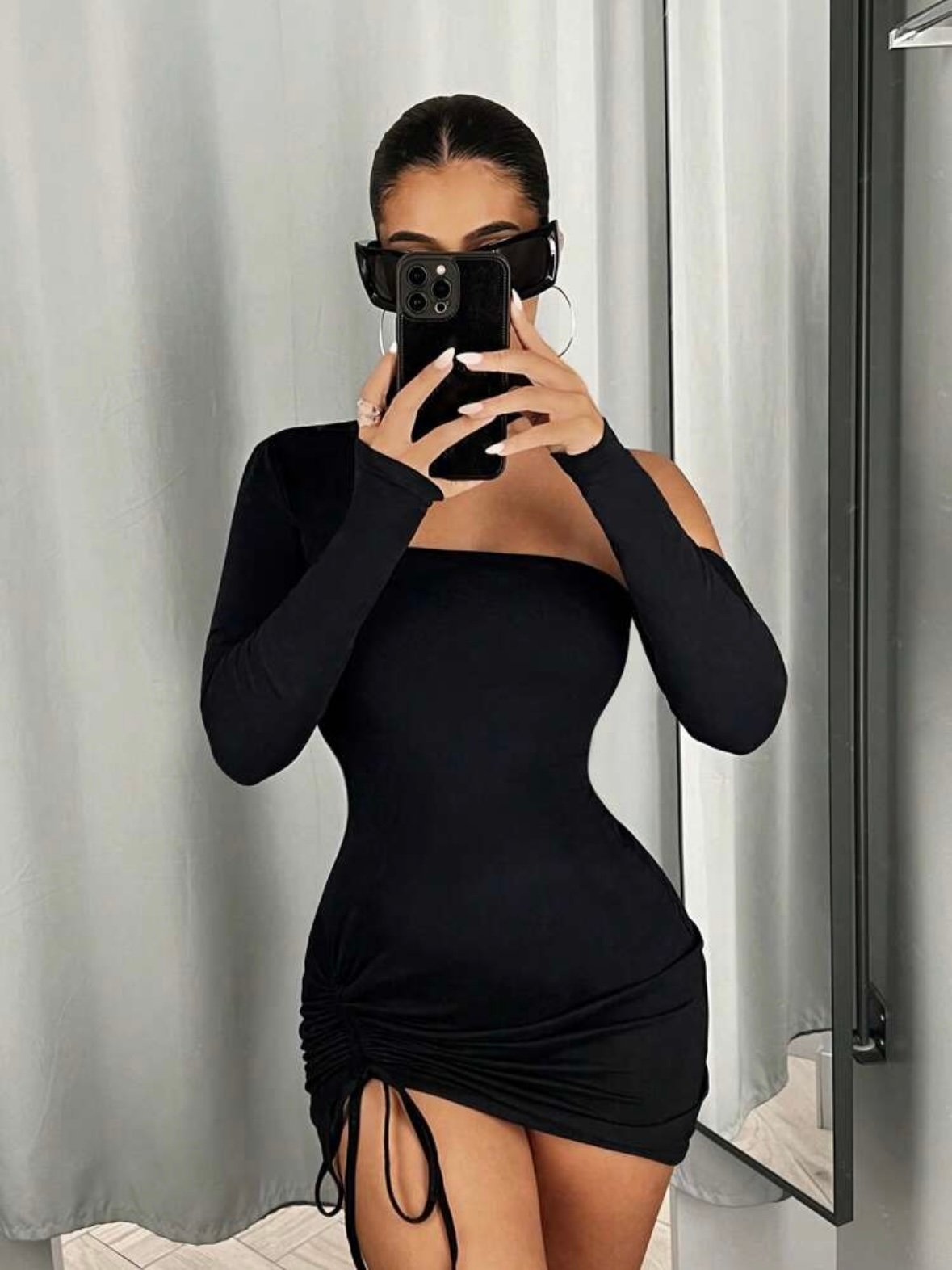 Knitted pencil dress bodycon backless sexy unlined long sleeve slim fit mini dress one sleeve dress