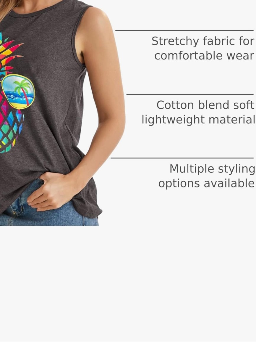 Party Pineapple Tank Top For Women 65% cotton 35% polyester pull on summer tank top in grey for women graphic lifestyle or swinger tank top