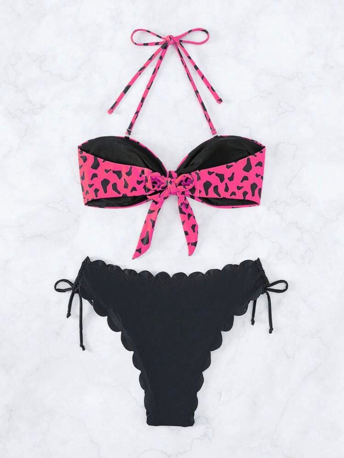 Strapless Scalloped Graphic Print Women’s Bikini Set Knot Front (4.86)